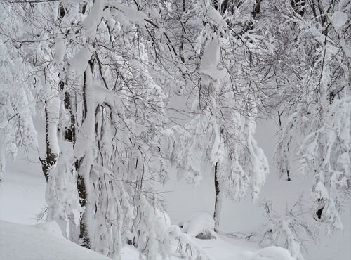 木のそばには、雪の下が空洞になっているところもありますから・・・。(;^ω^)( 2021.1 鳥海山にて )