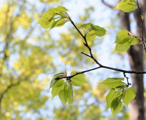 開いたばかりの薄く柔らかな葉が 陽の光に透けている様子にしばし見入ってしまいました。 ( 2021.4 高館山にて )