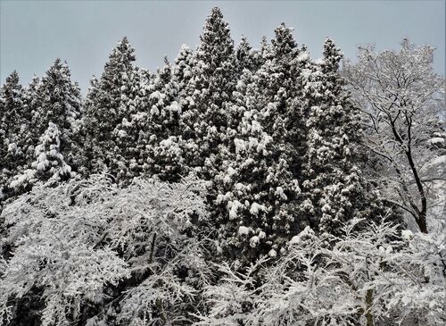 薄っすら積もった雪が、木々の枝葉にまた違う表情を与えてくれます