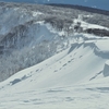 杉の木の間から向こうの方に雪がチラチラ降っているのが見えました。